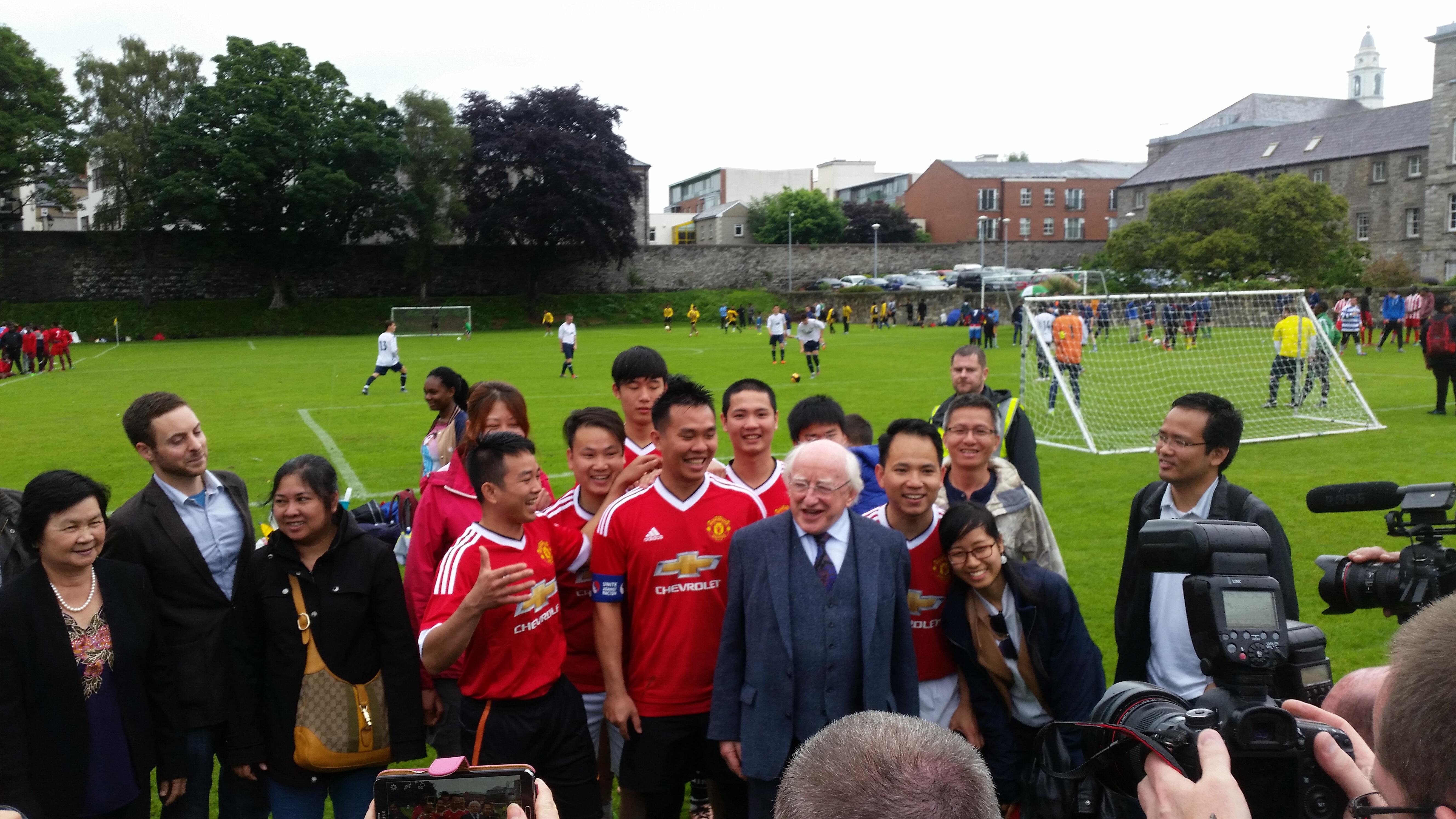 The President of Ireland Michael D. Higgins attended this year’s event, where he met with the teams and mingled with attendees before moving down to the football pitches to watch a game.