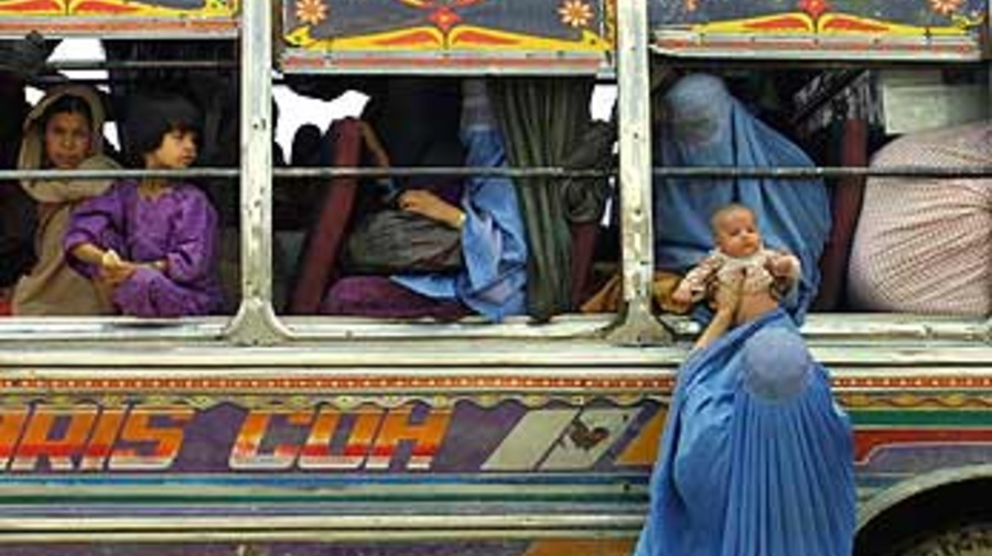 Afghan refugees returning from Pakistan, part of the 1.8 million assisted back to Afghanistan by UNHCR in 2002.
