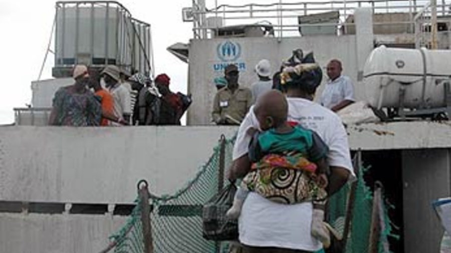 FREETOWN, Sierra Leone, August 28 (UNHCR) - The MV Overbeck arrived in Freetown today, ending five days of drifting on the high seas and bringing home 154 exhausted but relieved Sierra Leonean refugees from Liberia.