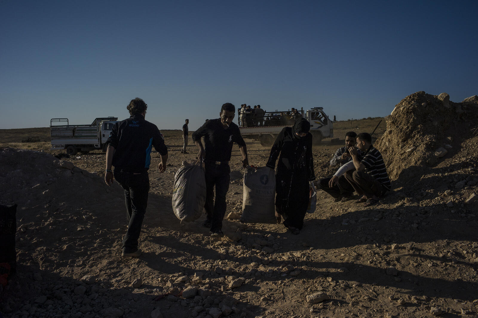 Jaber border crossing, Jordan--Along a dirt track on an unexpectedly cool and windy night on Jordan's border with Syria, as shadows lengthened across the barren hills, UNHCR Special Envoy Angelina Jolie listened to the stories of men women and children who had fled Syria just hours before. She heard stories of bombs and pain and loss from people fleeing Homs, Dara'a and Qusair, three of the communities devastated by the Syrian conflict. Ms. Jolie encouraged the refugees to tell her, and through her the world, of their ordeal. "We can't know your pain," Ms. Jolie said at one point, speaking to families who had lost their loved ones. But she listened.