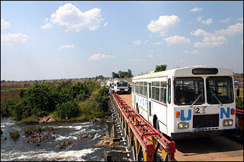The convoy crosses from Congolese to Angolan territory through the bridge at Dilolo.