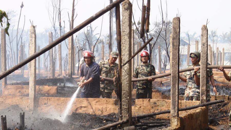 KATHMANDU, Nepal, March 22 (UNHCR) - Fire swept through two refugee camps in eastern Nepal on Tuesday, destroying some 700 shelters and leaving almost 5,000 people homeless. There were no serious casualties.