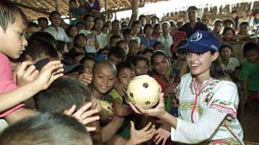 UNHCR Goodwill Ambassador Angelina Jolie having a ball with refugee children in Thailand's Tham Hin camp. Photo courtesy of and