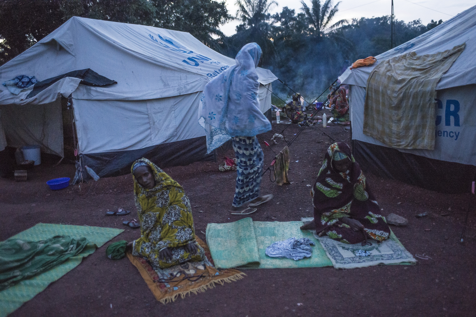 The 40-year-old refugee from Central African Republic sits and mourns on the hospital bed where the baby just died in the eastern Cameroon town of Batouri. He was also being treated for a nasty cudgel wound, inflicted by militiamen during the flight from the Central African Republic.