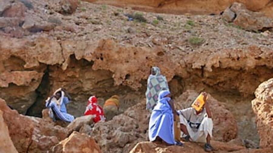 On the cliffs of Mareero, a smuggler's departure point 14 km east of Puntland's commercial port, Bossaso, Somalis wait for the evening departure of the smuggler's boat they hope will take them to Yemen.
