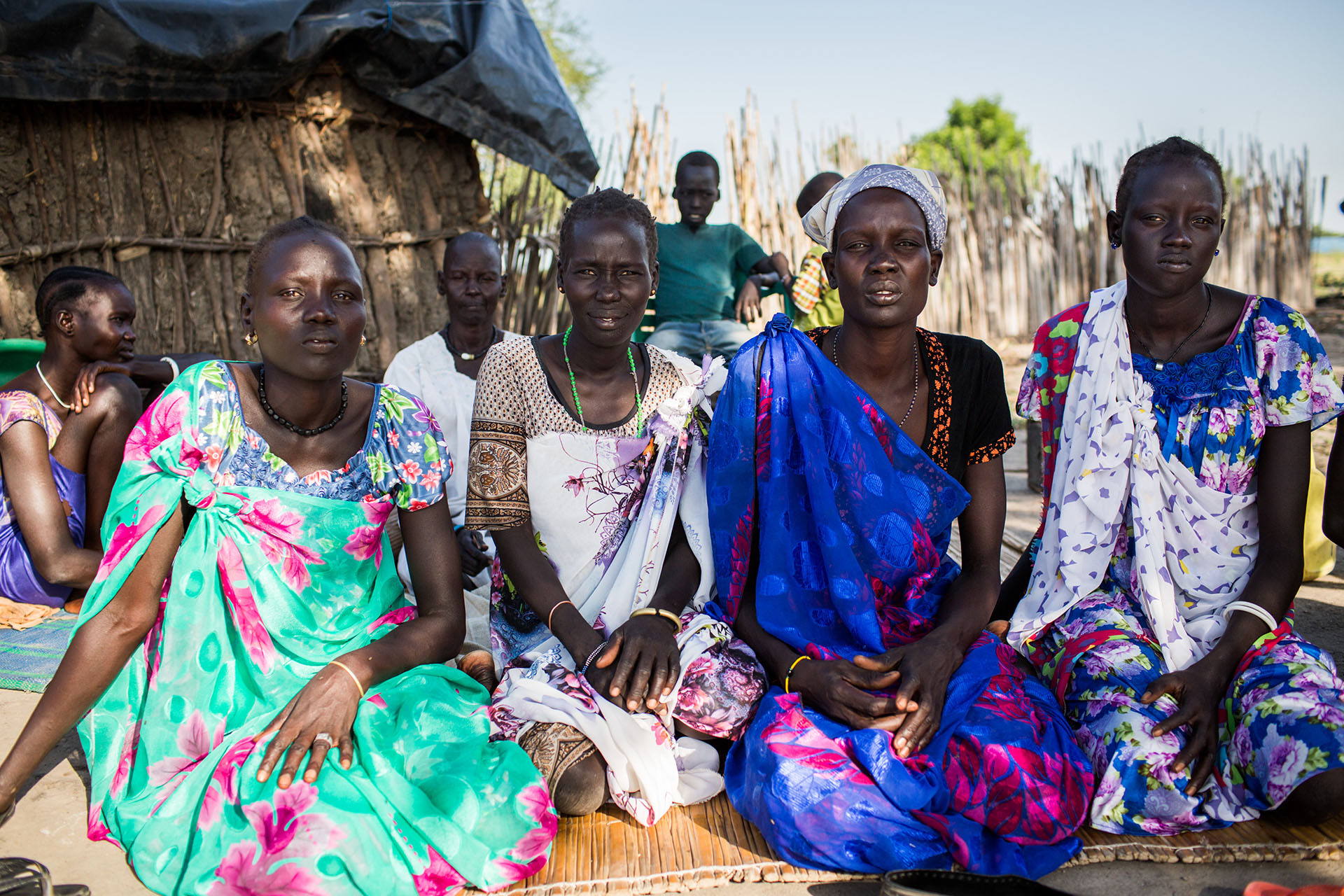 Nearly a year after they fled, Nyathay Duop, 22, Nyaruach Malol, 30, and Nyuot Duop, 24, return home to Leer, in Unity State, South Sudan.