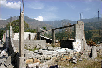 What used to be a girls' school in Mansehra, where 10 girls were killed in the quake. All that remains today are their schoolbags and books.