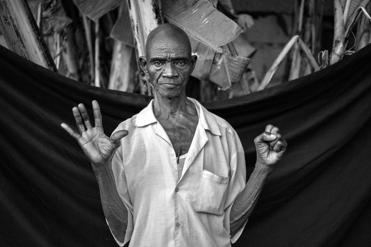 Antonio, 53, was orphaned by age 12 and forcibly recruited as a child soldier into Angola's bloody civil war. He says he led 150 child soldiers, some as young as six years old. "I was a soldier, and ... I did what I did in order to stay alive." After two battles, Antonio deserted and vanished into the forest. For more than a year he lived off the land, hunting buffalo and antelope with his gun. Eventually, he made his way to present-day DRC, then called Zaïre. "It was only after leaving Angola for Zaïre that I became wise. When I crossed the border, it was like beginning a new life. Everything from before remained in Angola." Antonio says the most important thing he brought with him is his story. "My family died, and I suffered greatly. I don't want my children to suffer. I tell them to look at what my life was like, at what wrongs I committed and how now I can't go home ... I want them to learn from my story."