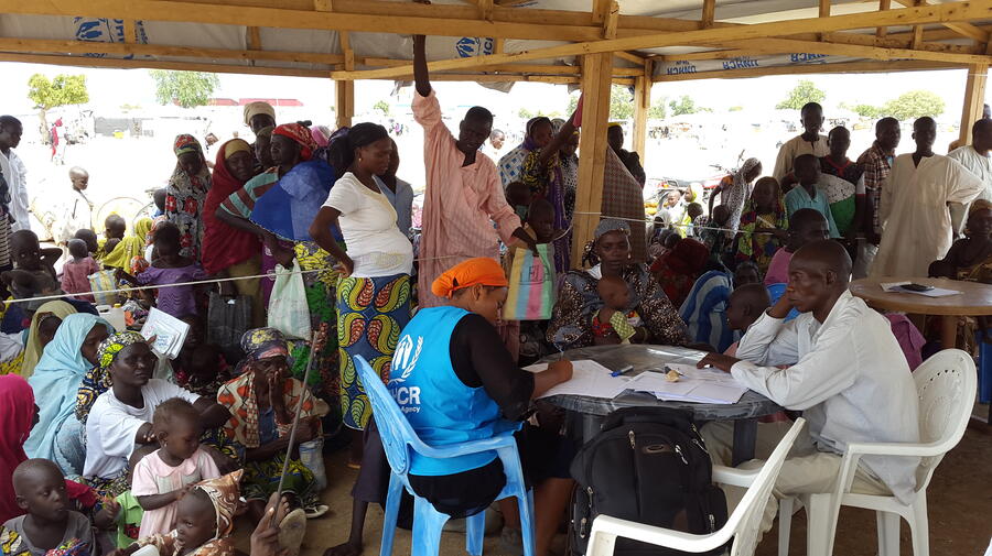 Newly-arrived Nigerian refugees register with UNHCR officials at Minawao Camp, northern Cameroon.