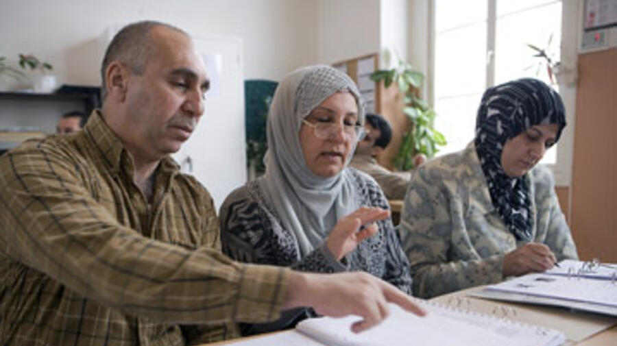 Resettlement Milestone: Iraqi refugees take Swedish language classes in the town of Flen.