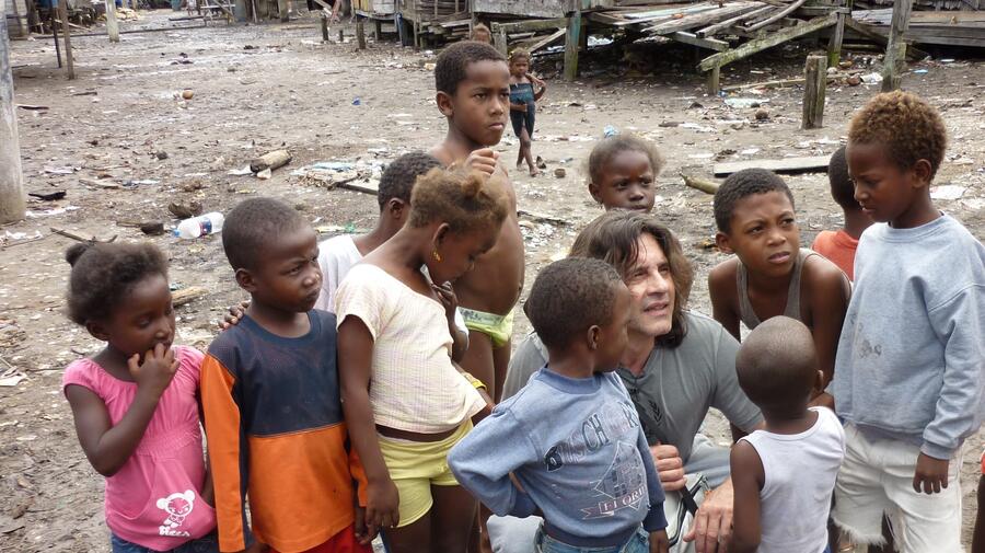 UNHCR Goodwill Ambassador Osvaldo Laport surrounded by children in Tambillo, Ecuador.