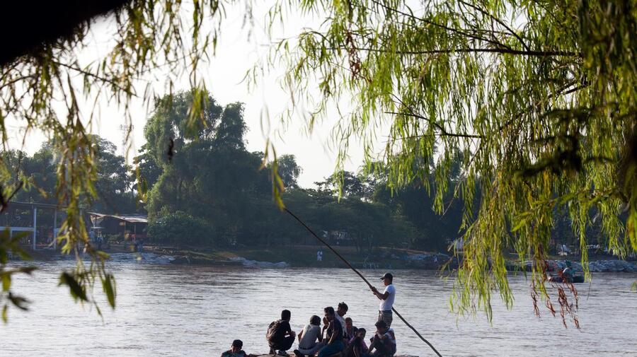 A raft crosses the Suchiate River, which divides Guatemala from Mexico, in Chiapas, Mexico. It is a key transit point for Central Americans fleeing gang violence.