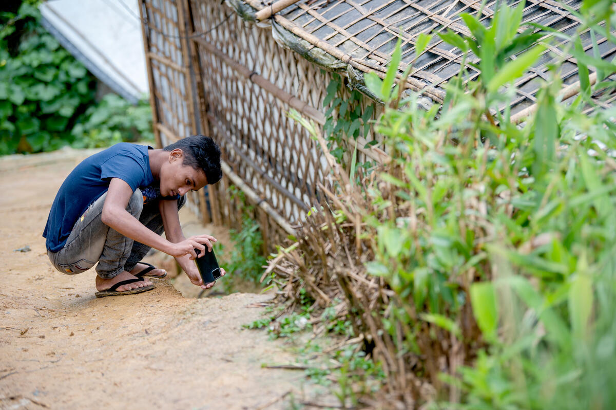 Hasson, or “Asun” to his friends, is now 13. He spends his mornings like most other Rohingya children in the camps, attending a learning centre. Afternoons are for playing football and wandering the camp taking photos with his mobile phone.