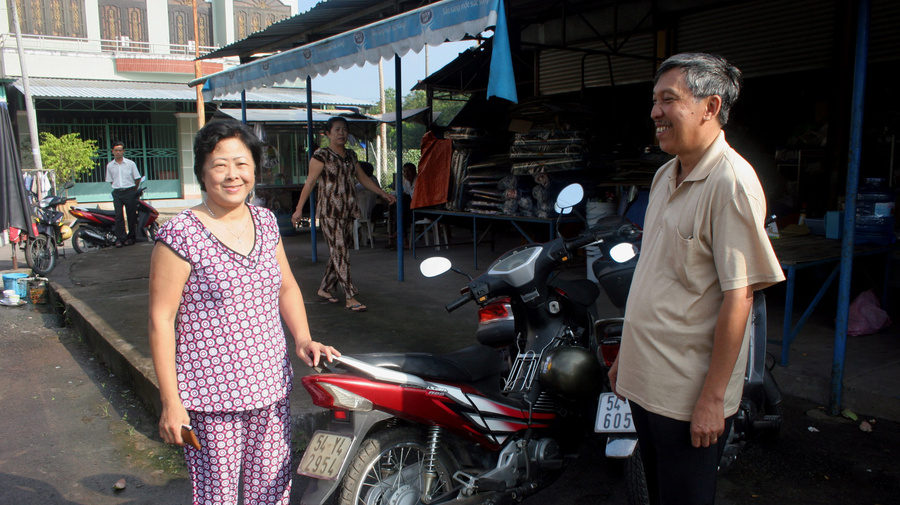 Tran Hoang Phuc and his wife display their wheel power in Cu Chi, Viet Nam. Formerly stateless, he could not legally buy a motorbike until he became a Vietnamese citizen recently.
