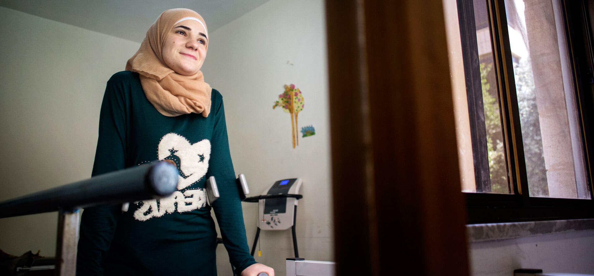Physiotherapy sessions in Jordan help Wisam rebuild her muscles.