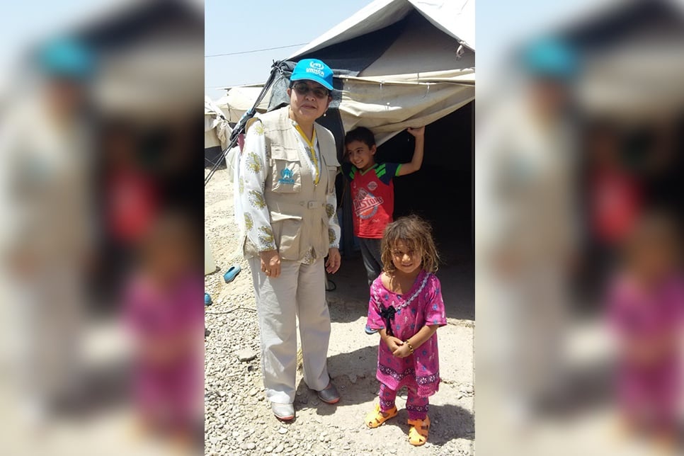 UNHCR's Principal Advisor on Internal Displacement, Sumbul Rizvi, at a camp for internally displaced people in Salahedin, Iraq, in 2017.