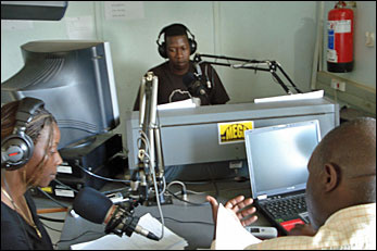 Officials from Gulu district take part in a UNHCR-sponsored radio programme on Mega FM.
