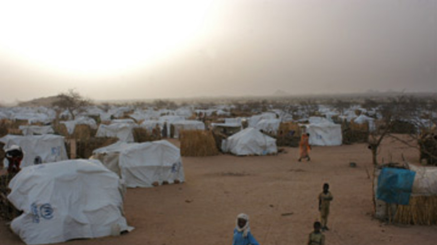 Iridimi camp at sunset. UNHCR is withdrawing most of its staff from the nearby town of Iriba due to security concerns.