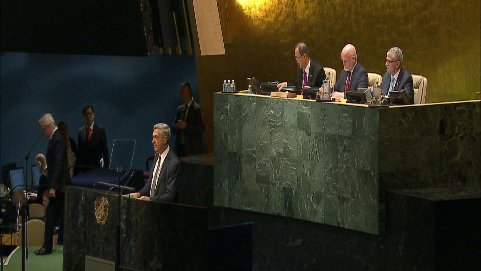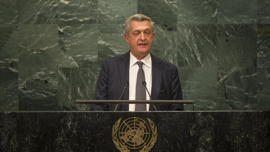 UN High Commissioner for Refugees Filippo Grandi addresses the Summit on Addressing Large Movements of Refugees and Migrants at the UN General Assembly in New York.