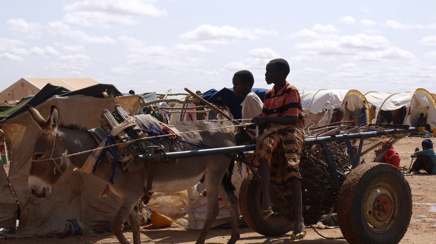Like these Somali refugees in Dollo Ado, Hassen travelled on a donkey drawn cart for much of the way to Ethiopia.