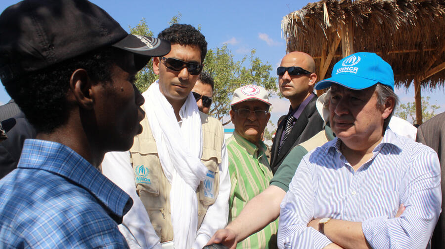 CHOUCHA CAMP, Tunisia, June 17 (UNHCR) - UN High Commissioner for Refugees António Guterres returned this week to North Africa and issued a fresh call for the international community to help countries like Tunisia who have sheltered hundreds of thousands of people displaced by the violence in Libya.