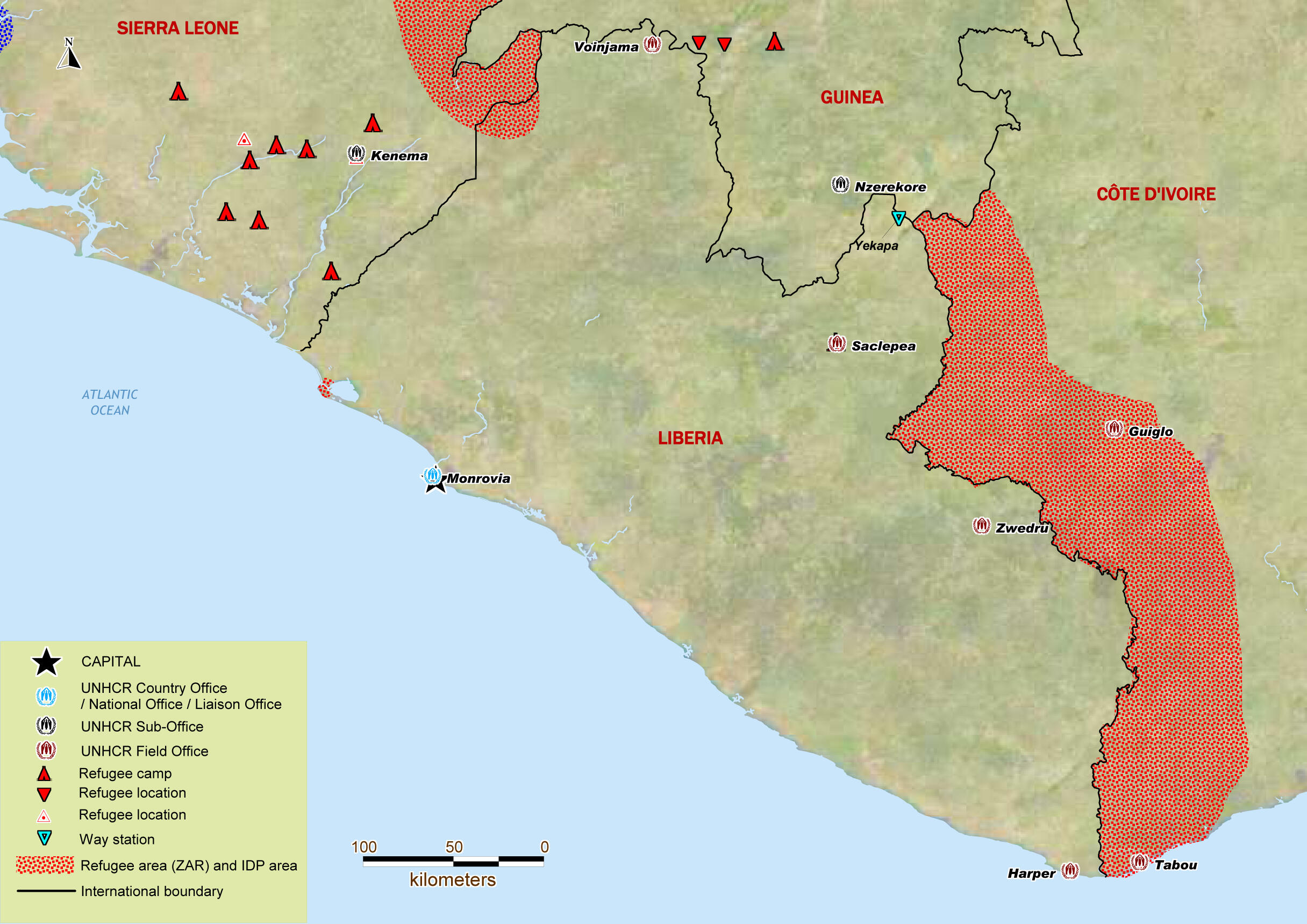 UNHCR decides to establish a camp in Liberia to shelter refugees fleeing from neighbouring Côte d'Ivoire. Some 18,000 people have fled to Liberia.