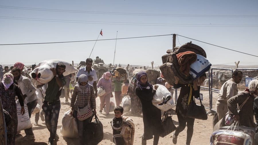 Syrian Kurdish refugees cross into Turkey from Syria near the northern town of Kobane last year.
