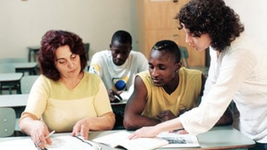 Refugees from different countries learning Spanish together in Argentina, 2004.