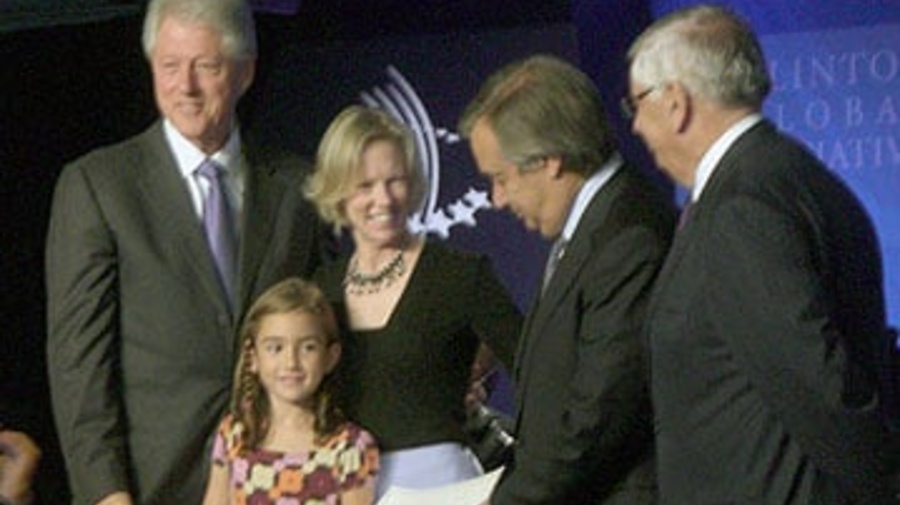 From left: Former US President Bill Clinton, young fund-raiser Katherine Commale, UN Foundation Vice President Kathy Calvin, UNHCR chief António Guterres and NBA Commissioner David Stern at the Clinton Global Initiative in New York.