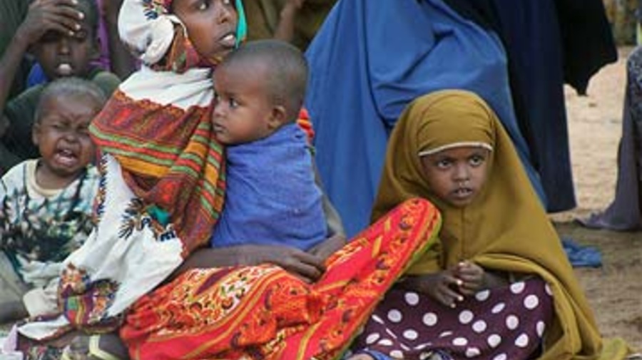 A Somali refugee and her children at Dadaab in north-east Kenya after fleeing fighting and the destruction of their home in Mogadishu.