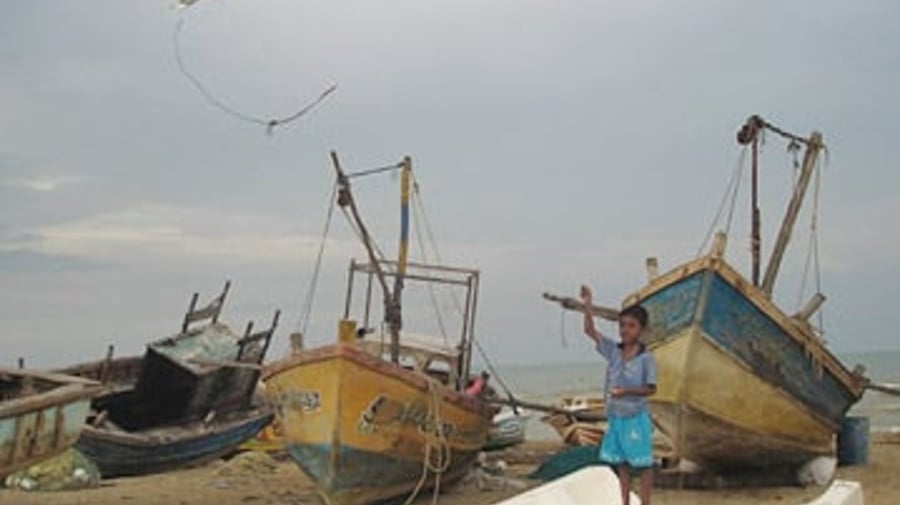 A boy flies his kite beside boats in the Mannar region of north-west Sri Lanka. UN agencies are helping local fishing cooperatives expand their markets as part of a wider effort to make people feel safer.