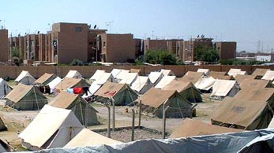 Palestinian refugees forced from their homes in Baghdad are now living in a tented camp.