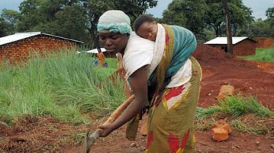 A refugee woman, one of the 1972 Burundians, takes part in construction work at a settlement in Tanzania. These settlements have become self-sustainable over the years.