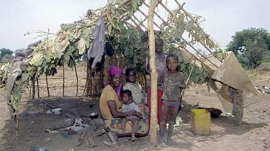 Central African refugees who fled to Chad's remote southern border in 2003 also built flimsy shelters out of leaves and sticks.