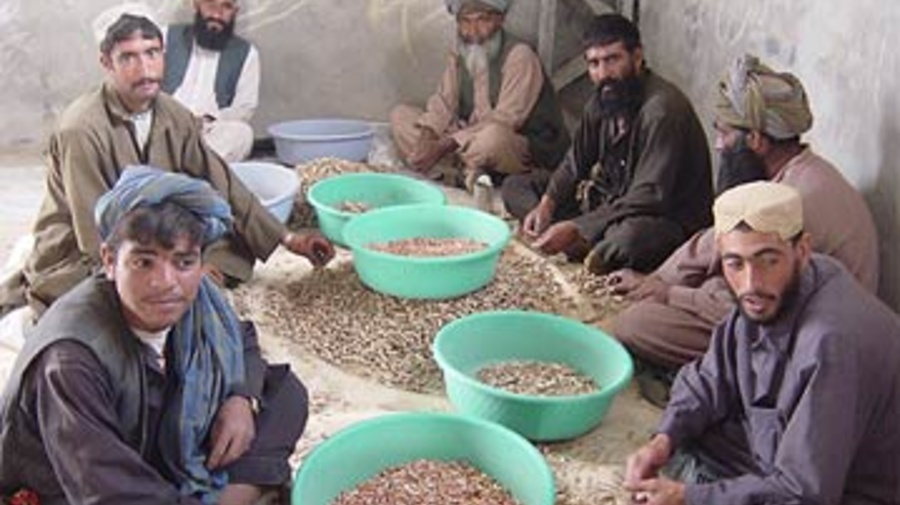 Zhare Dasht camp in southern Afghanistan offers income-generating projects, like this peanut factory, for internally displaced Afghans.