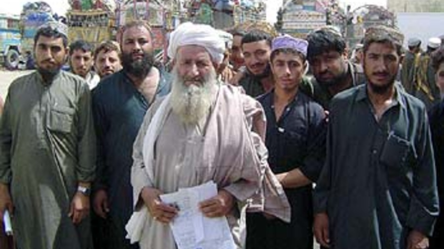 Afghan elder Haji Ali Khan and his group before leaving Karachi for Afghanistan's Faryab province.