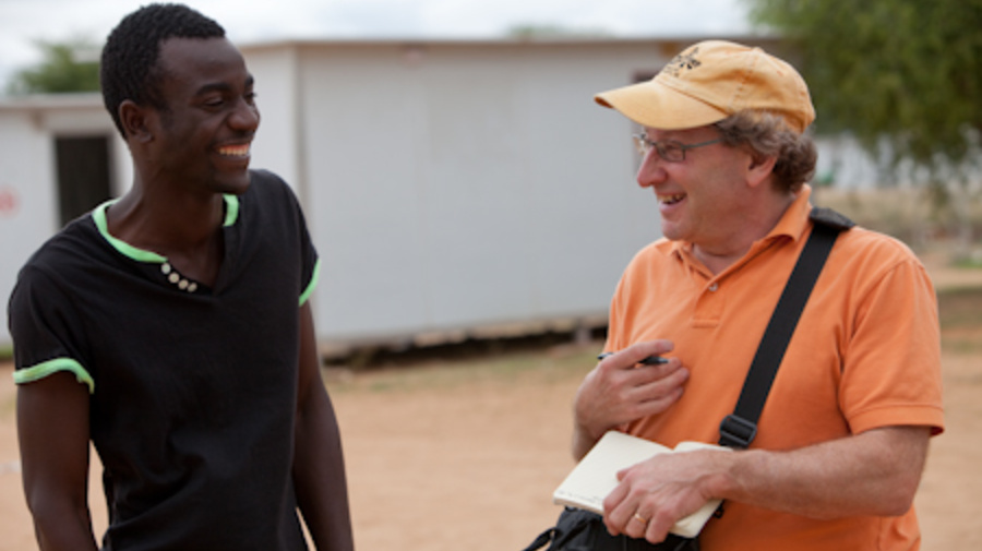 Hendricks Kabemba, a 21-year-old refugee from Democratic Republic of the Congo, with American journalism professor Jack Doppelt.