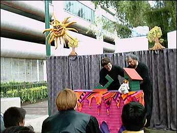 Spectators at the World Refugee Day Festival were entertained by a puppet show and music performances.