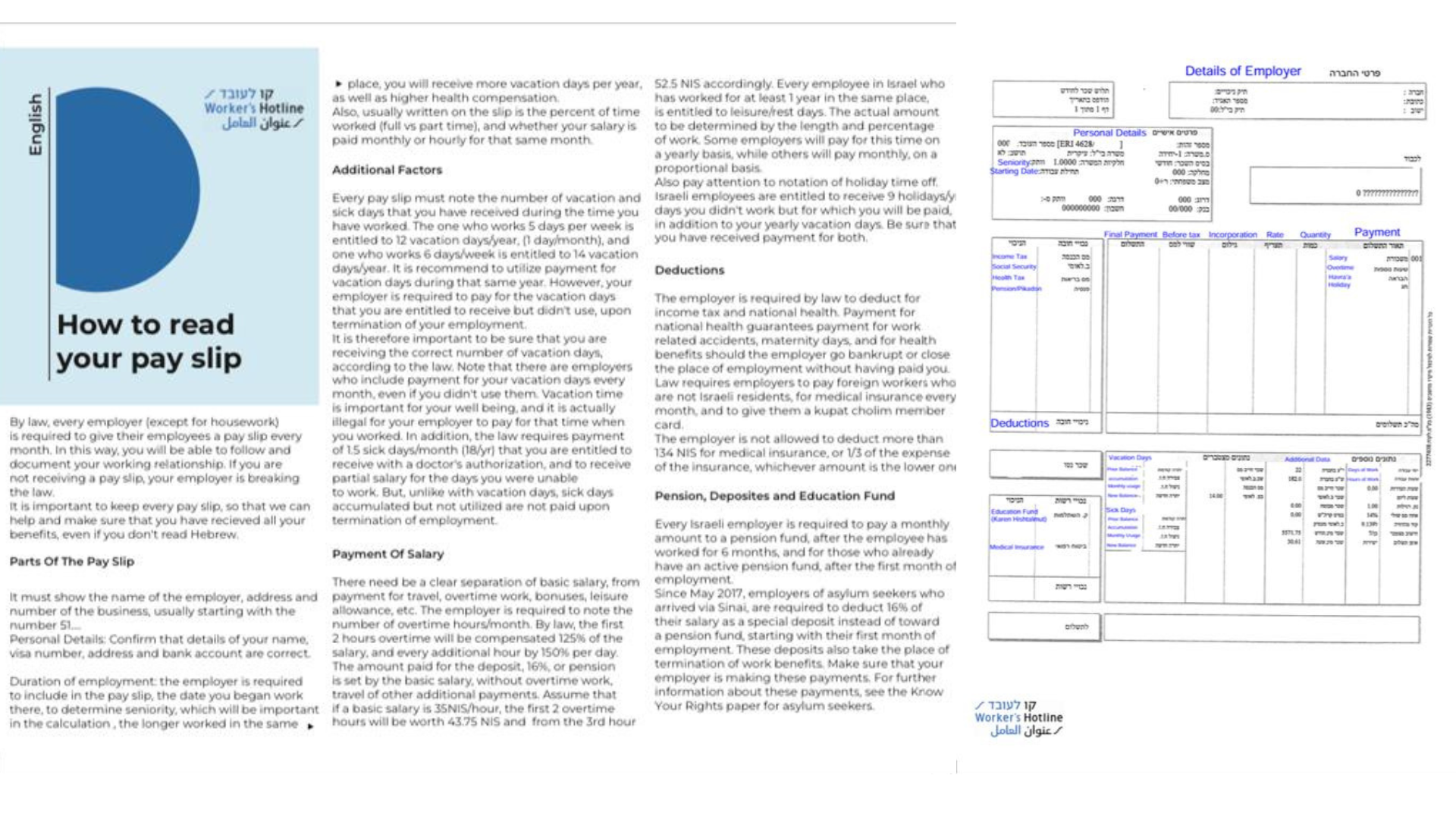 “Kav LaOved”, an NGO that has been working for more than 30 years to promote the rights of all workers in the Israeli economy, was aware of the vulnerability of asylum-seekers as workers and the issue of inaccessibility. Malka and her team sought to change this exact situation and help Zirai and thousands of asylum seekers from Sudan and Eritrea who are in a similar situation due to their temporary status and language gaps.