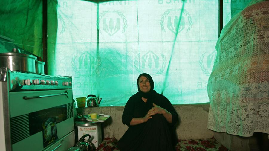 The UN refugee agency is expanding its work in Iraq to help people like this internally displaced woman who received UNHCR plastic sheeting earlier this year at a camp northwest of Baghdad.
