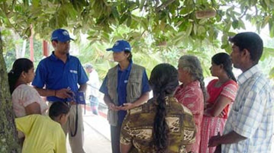 GALLE, Sri Lanka, Jan 11 (UNHCR) - As its emergency relief efforts gather pace in Sri Lanka, the UN refugee agency has sent a team to the south to discuss the longer-term shelter and documentation needs of people displaced by the tsunami.