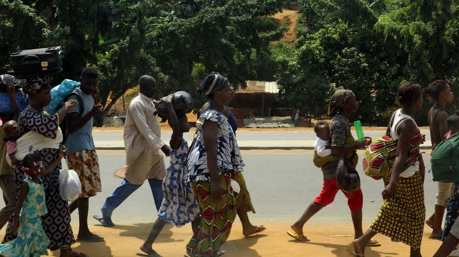Civilians leave the dangerous suburb of Abobo in Abidjan. UNHCR is worried about access to the needy.