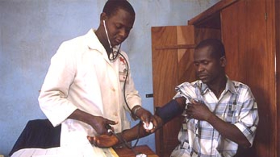 A refugee being examined in a clinic in Massakoundou camp, Guinea. Regular checkups and awareness-raising campaigns have meant that HIV infection rates are often lower in refugee camps than in surrounding populations.