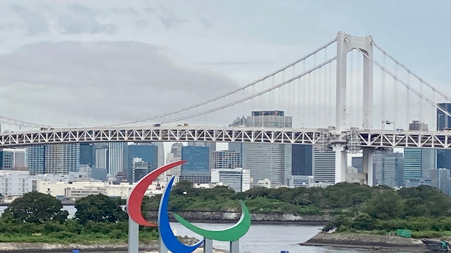 The Paralympic Symbol installed for the Tokyo 2020 Paralympic Games at Odaiba Marine Park, Tokyo.