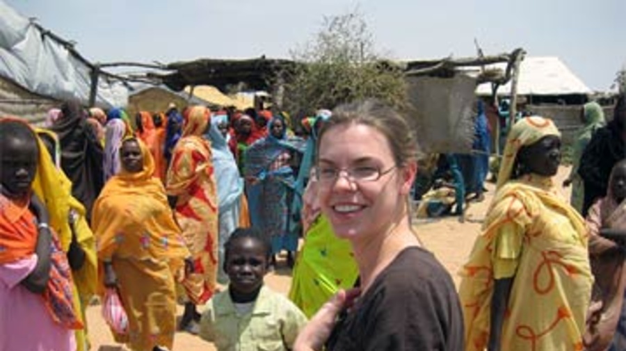 Erin Patrick at a site for internally displaced people in Northern Darfur, Sudan.
