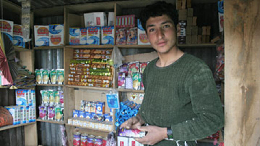 Khan Aga, an enterprising 19-year-old returnee, has set up a small shop in his township in Parwan province.