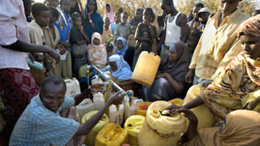 Somali refugees wait to get water in Ifo camp. Long lines and difficulty getting ample water is a growing problem in Dadaab due to the growing numbers of Somalis fleeing to Kenya.