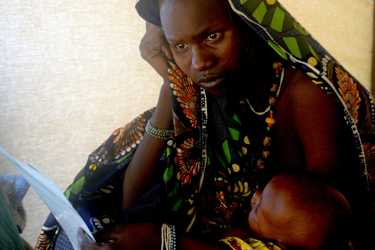 After fleeing violence in Mopti, in northern Mali, Moona and her baby are seeking refuge at Mbera camp, in Mauritania.