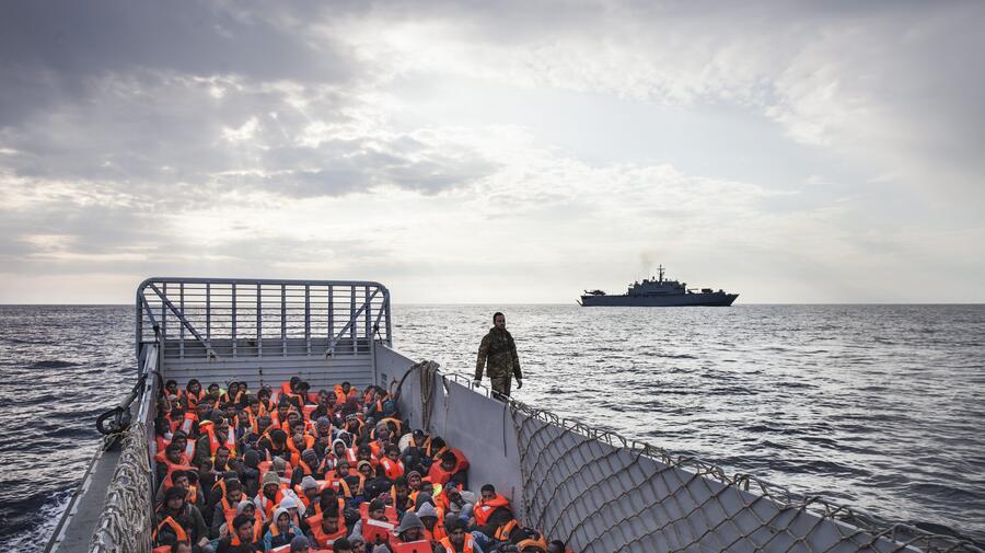 ON BOARD THE SAN GIUSTO, Mediterranean Sea, March 21 (UNHCR) - The winds and waves decide the fate of those who flee across the Mediterranean. When the gusts push from north to south and the swells off the Libyan coast are animated, asylum-seekers remain hidden in small houses with their smugglers. But when the weather clears and the air currents stir from south to north, they meet on the seaside where they board grey rubber rafts and colourful wooden boats and make their way toward the watery horizon.