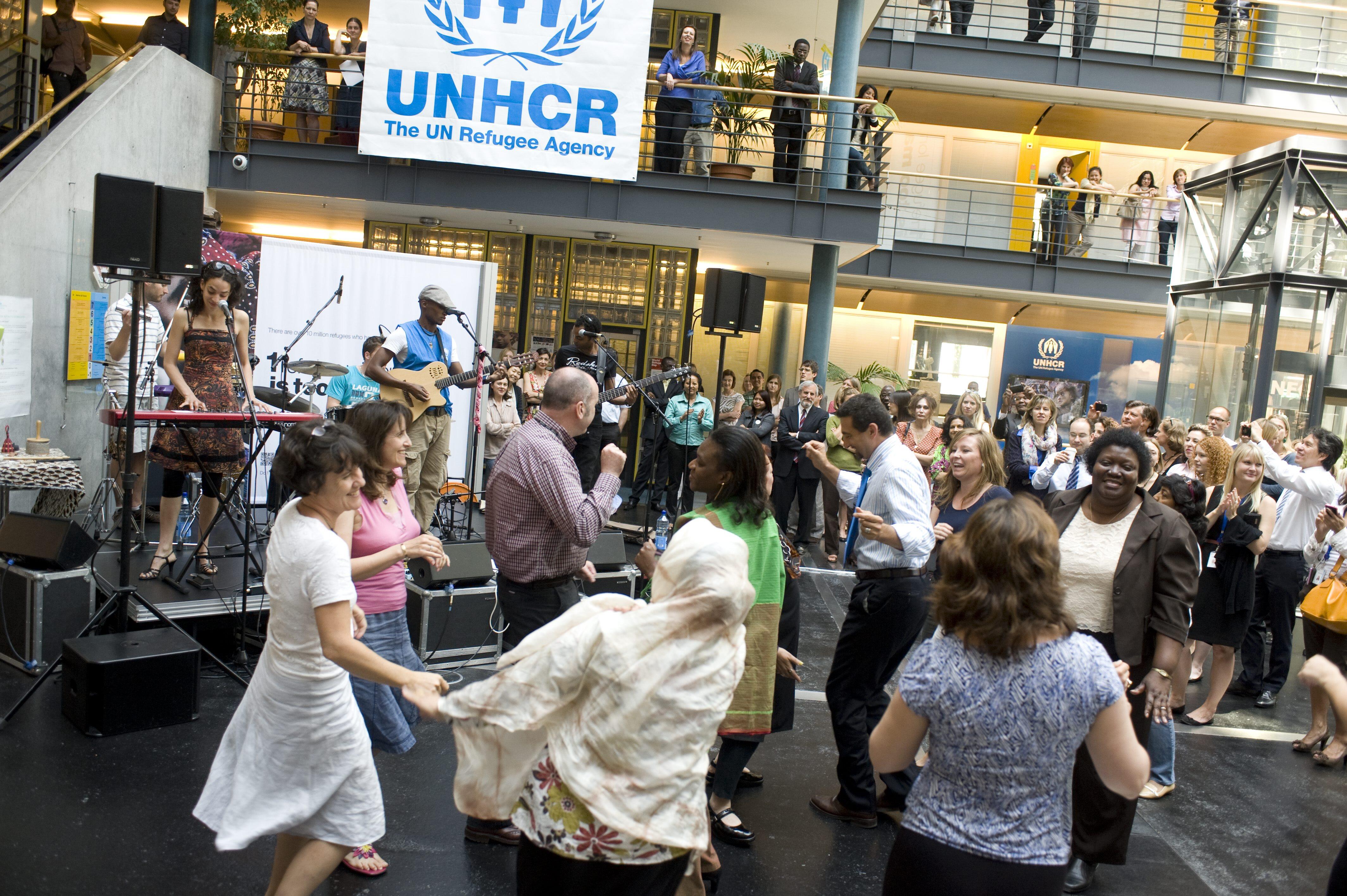 Time for a Party: Staff dance in UNHCR headquarters on World Refugee Day.